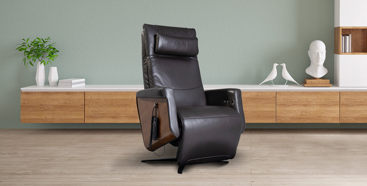 Introducing the Human Touch® Circa ZG Chair. Circa combines the therapeutic benefits of zero gravity seating with air massage technology, soothing heat, and power-adjustable seating. Control the chair using the included remote or the easy-access, one-touch armrest controls. Designed with a durable, steel swivel base paired with luxurious leather and an Oak wood-accent, Circa delivers both soothing neutral-posture pain relief and exceptional seating comfort.